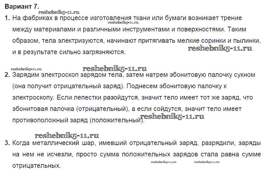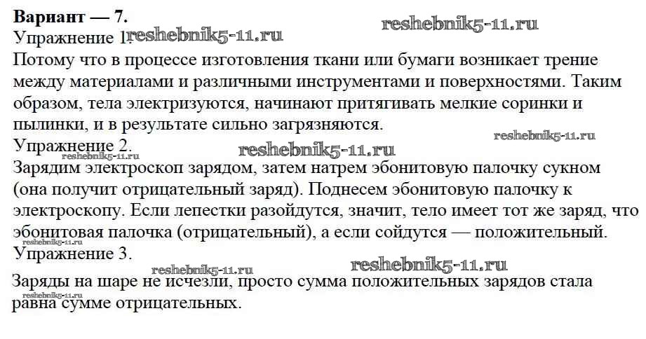 Готовая домашняя работа с ответами по Физике за 8 класс Марон Дидактические материалы Вертикаль Дрофа 2016 ФГОС - СР №6. Электризация тел. Электрическое поле. Строение атома. Варианты 7