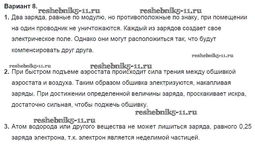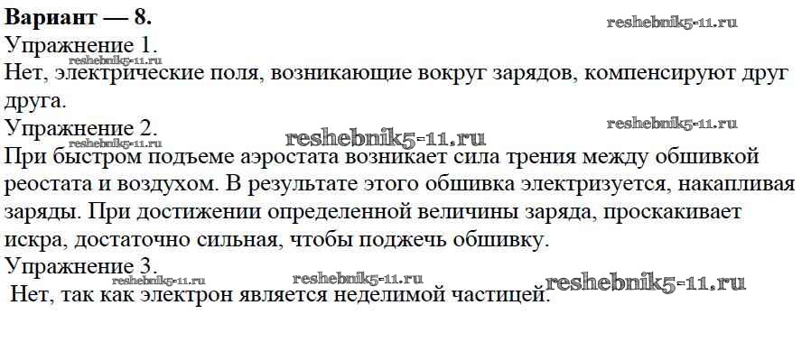 Готовая домашняя работа с ответами по Физике за 8 класс Марон Дидактические материалы Вертикаль Дрофа 2016 ФГОС - СР №6. Электризация тел. Электрическое поле. Строение атома. Варианты 8