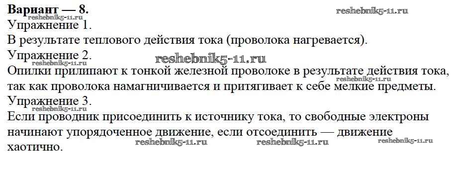 Готовая домашняя работа с ответами по Физике за 8 класс Марон Дидактические материалы Вертикаль Дрофа 2016 ФГОС - СР №7. Электрический ток. Варианты 8