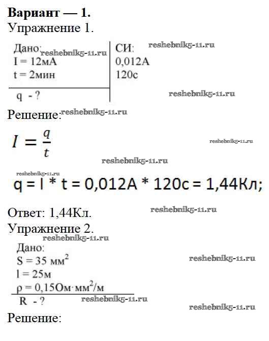 СР №8. Сила тока. Напряжение. Закон Ома для участка цепи Варианты