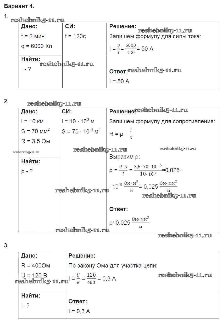 СР №8. Сила тока. Напряжение. Закон Ома для участка цепи Варианты