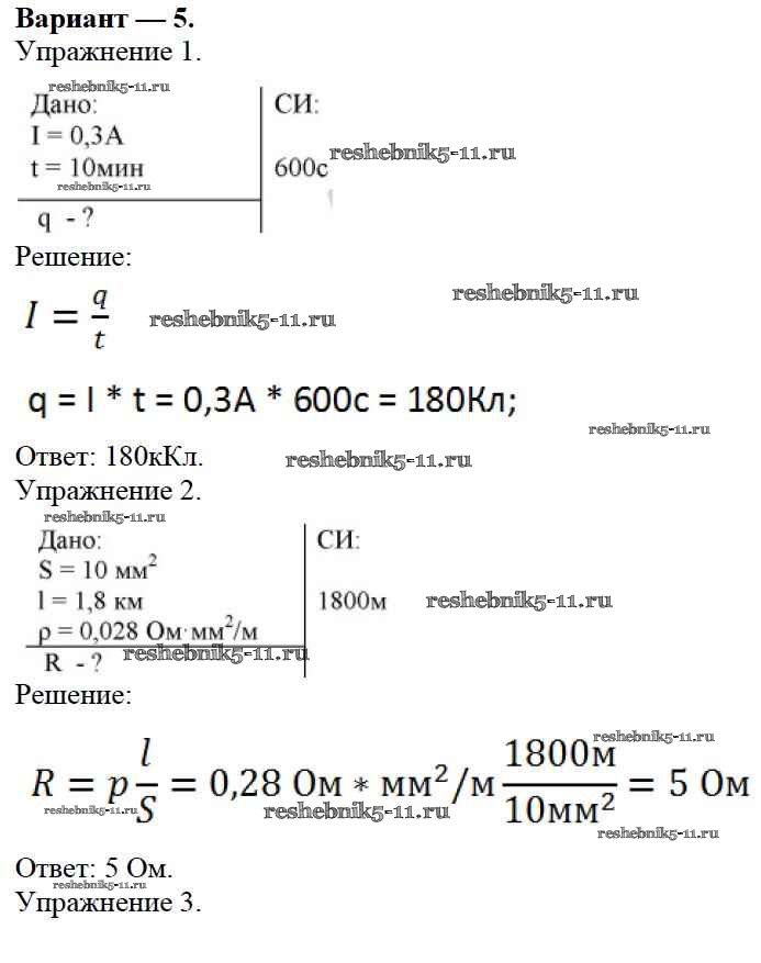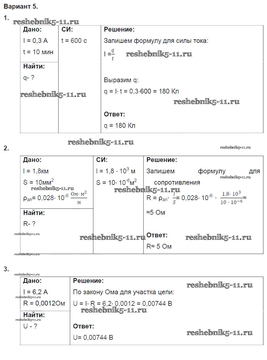 Готовая домашняя работа с ответами по Физике за 8 класс Марон Дидактические материалы Вертикаль Дрофа 2016 ФГОС - СР №8. Сила тока. Напряжение. Закон Ома для участка цепи Варианты 5