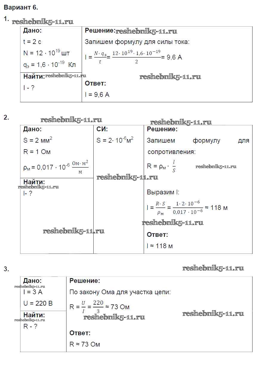 Тест №6.Сила тока. Напряжение. Сопротивление. Закон Ома для участка цепи. Варианты