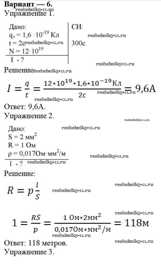 Готовая домашняя работа с ответами по Физике за 8 класс Марон Дидактические материалы Вертикаль Дрофа 2016 ФГОС - СР №8. Сила тока. Напряжение. Закон Ома для участка цепи Варианты 6