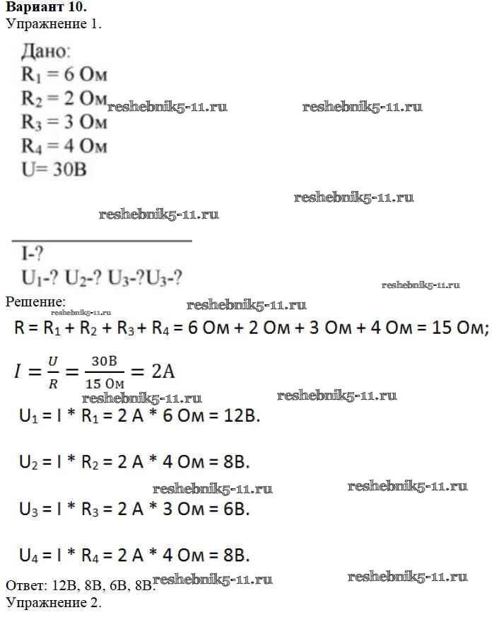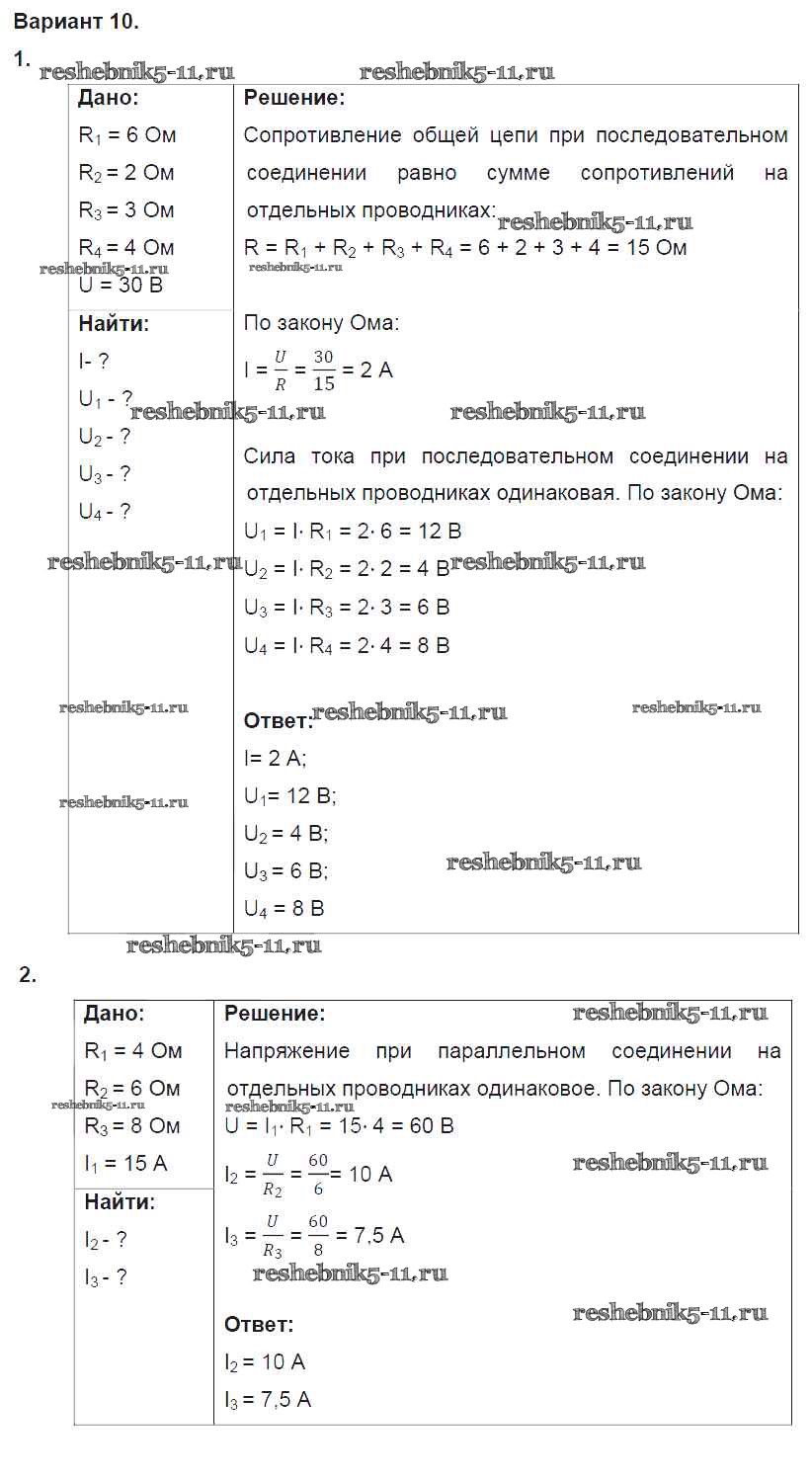 Готовая домашняя работа с ответами по Физике за 8 класс Марон Дидактические материалы Вертикаль Дрофа 2016 ФГОС - СР №9. Соединение проводников. Варианты 10