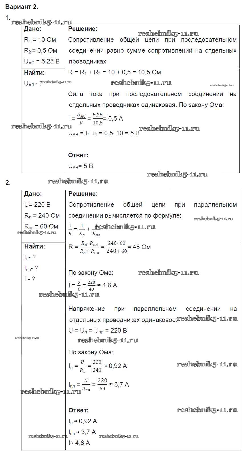 Готовая домашняя работа с ответами по Физике за 8 класс Марон Дидактические материалы Вертикаль Дрофа 2016 ФГОС - СР №9. Соединение проводников. Варианты 2