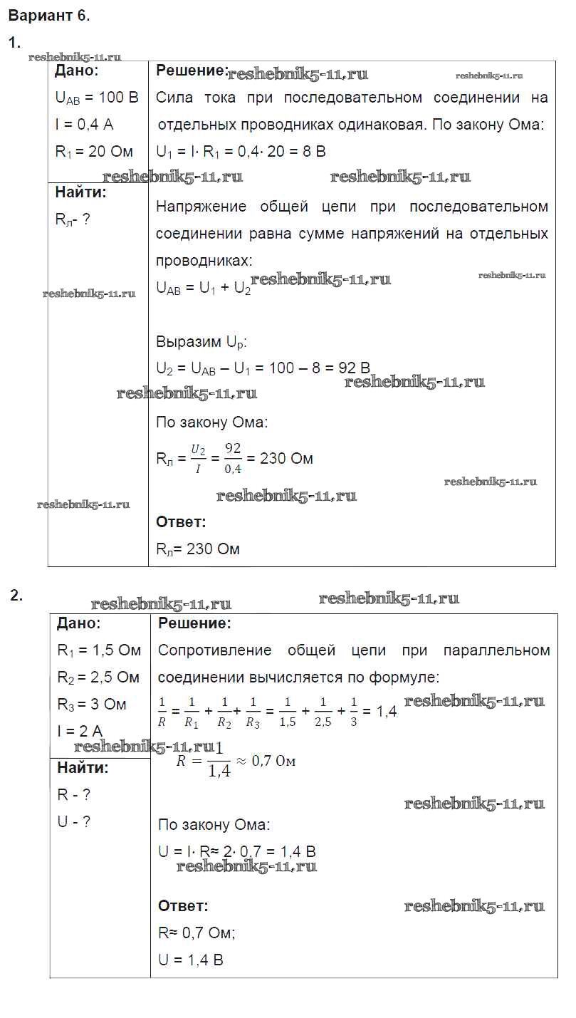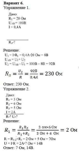 Готовая домашняя работа с ответами по Физике за 8 класс Марон Дидактические материалы Вертикаль Дрофа 2016 ФГОС - СР №9. Соединение проводников. Варианты 6