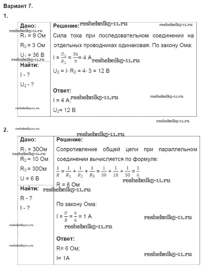 Готовая домашняя работа с ответами по Физике за 8 класс Марон Дидактические материалы Вертикаль Дрофа 2016 ФГОС - СР №9. Соединение проводников. Варианты 7