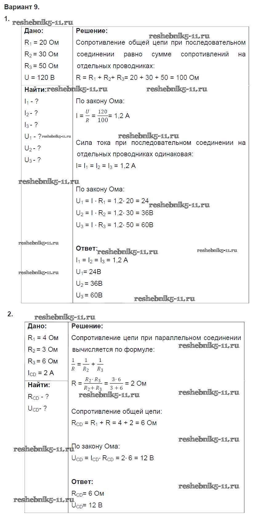 Готовая домашняя работа с ответами по Физике за 8 класс Марон Дидактические материалы Вертикаль Дрофа 2016 ФГОС - СР №9. Соединение проводников. Варианты 9