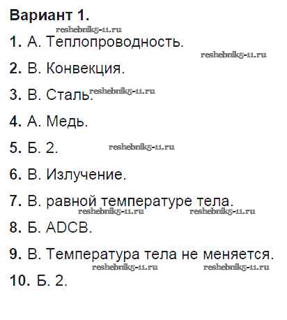 Тест №1. Виды теплопередачи. Варианты