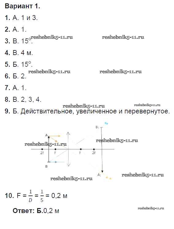 Тест №10. Оптические явления. Варианты