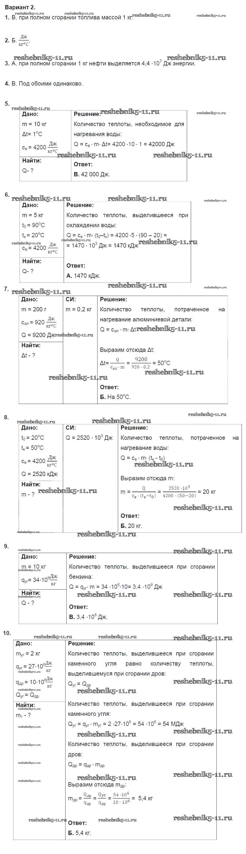 Готовая домашняя работа с ответами по Физике за 8 класс Марон Дидактические материалы Вертикаль Дрофа 2016 ФГОС - Тест №2. Количество теплоты. Энергия топлива. Варианты 2