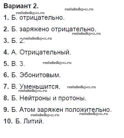 Тест №5. Электризация тел. Электрическое поле. Строение атома. Варианты