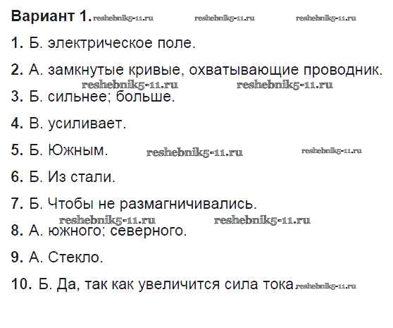 Готовая домашняя работа с ответами по Физике за 8 класс Марон Дидактические материалы Вертикаль Дрофа 2016 ФГОС - Тест №9. Электромагнитные явления. Варианты 1