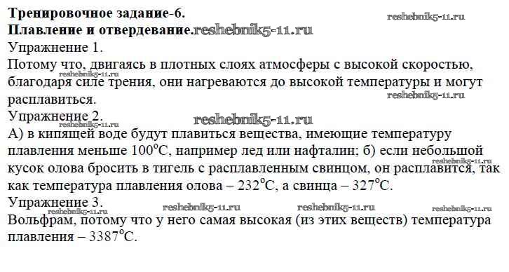Решебник 1 / тренировочное задание / 6. Плавление и отвердевание