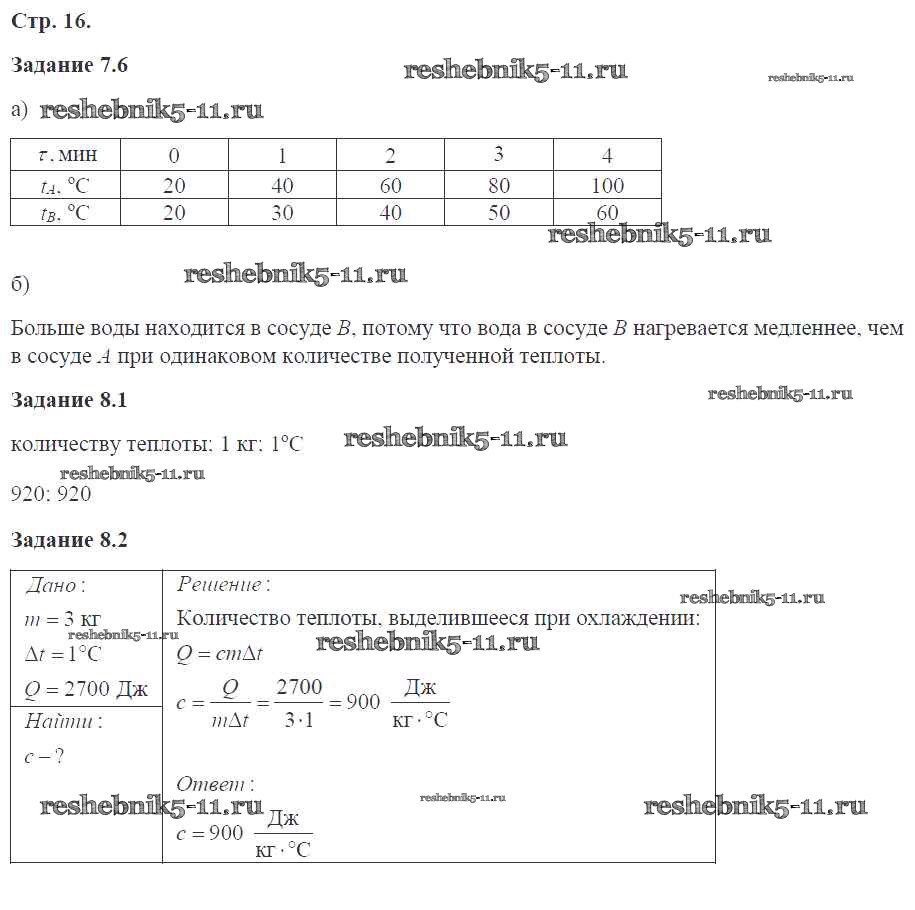 Готовая домашняя работа с ответами по Физике за 8 класс Ханнанова Рабочая тетрадь Вертикаль Дрофа 2017 ФГОС - Страницы 16