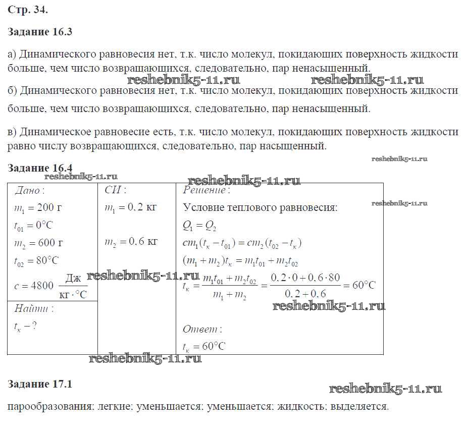 Готовая домашняя работа с ответами по Физике за 8 класс Ханнанова Рабочая тетрадь Вертикаль Дрофа 2017 ФГОС - Страницы 34