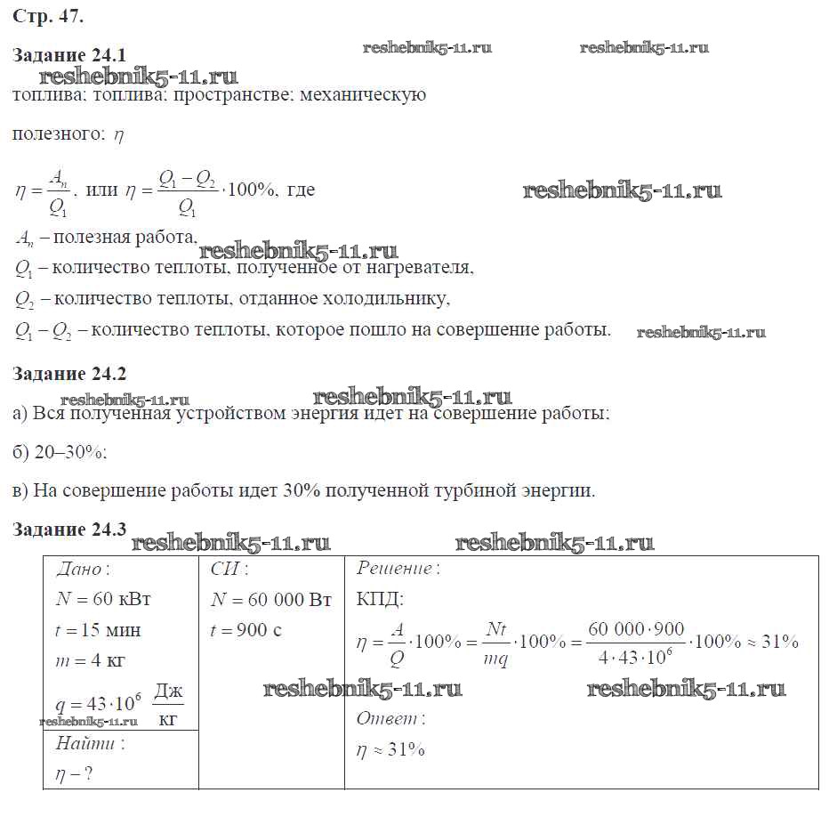 Готовая домашняя работа с ответами по Физике за 8 класс Ханнанова Рабочая тетрадь Вертикаль Дрофа 2017 ФГОС - Страницы 47