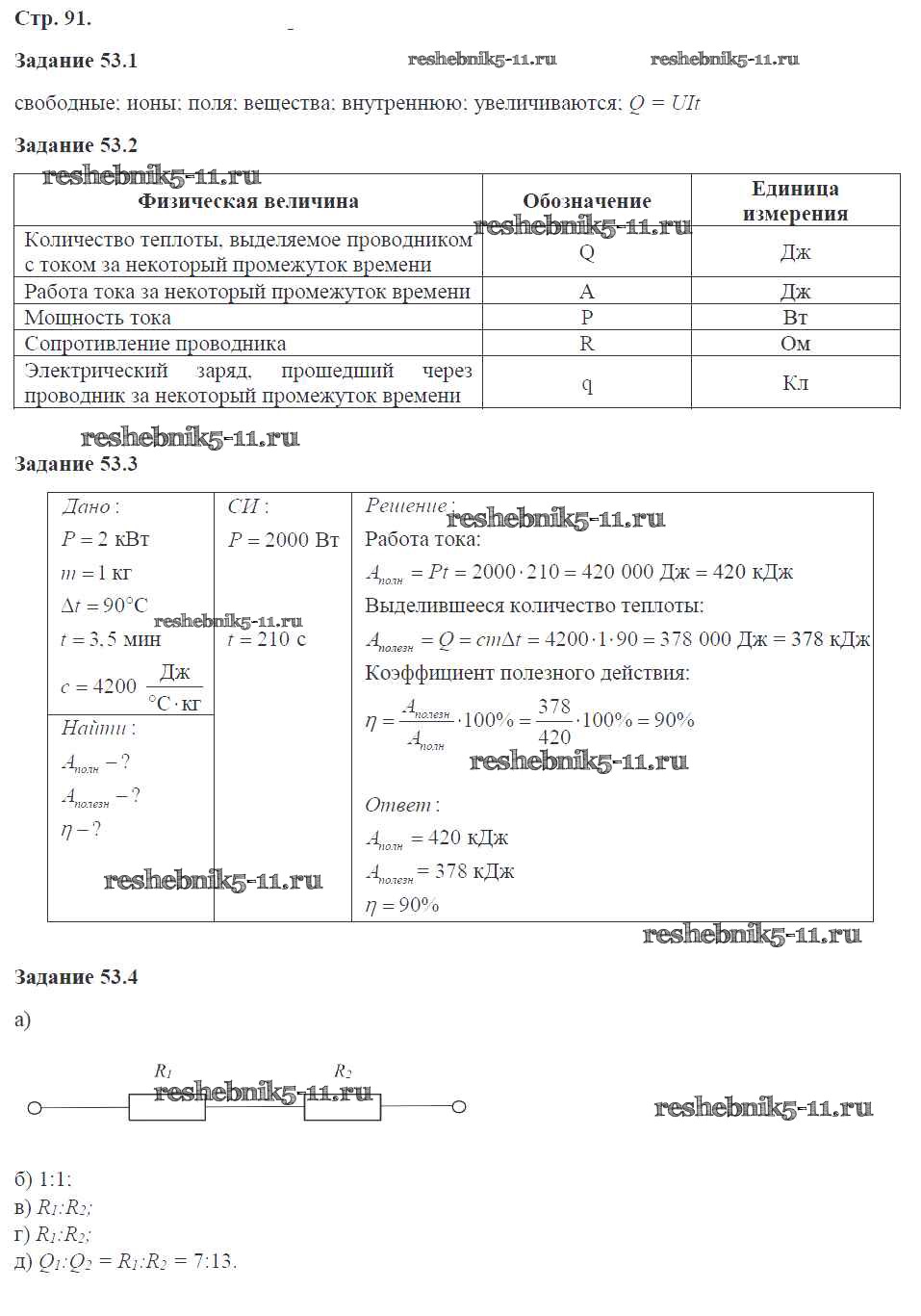 Готовая домашняя работа с ответами по Физике за 8 класс Ханнанова Рабочая тетрадь Вертикаль Дрофа 2017 ФГОС - Страницы 91