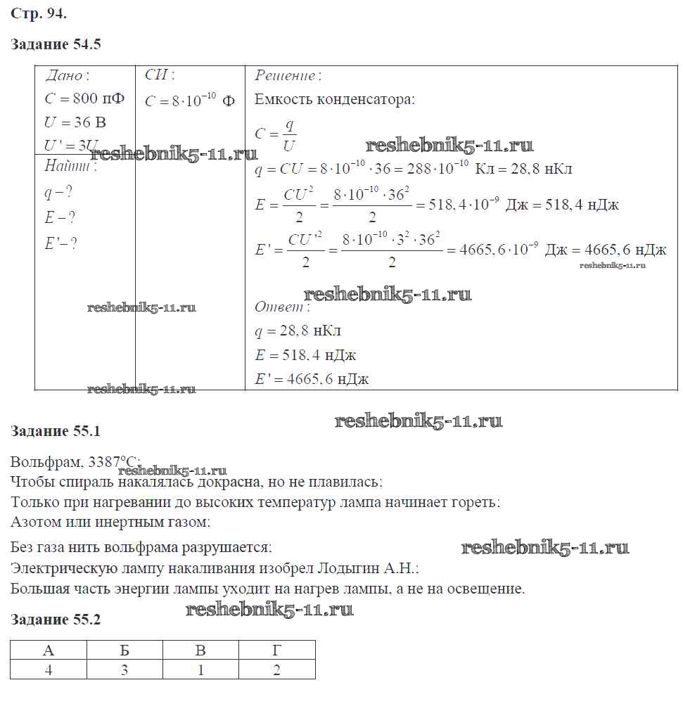 Готовая домашняя работа с ответами по Физике за 8 класс Ханнанова Рабочая тетрадь Вертикаль Дрофа 2017 ФГОС - Страницы 94