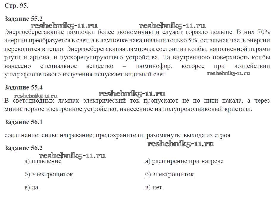 Готовая домашняя работа с ответами по Физике за 8 класс Ханнанова Рабочая тетрадь Вертикаль Дрофа 2017 ФГОС - Страницы 95