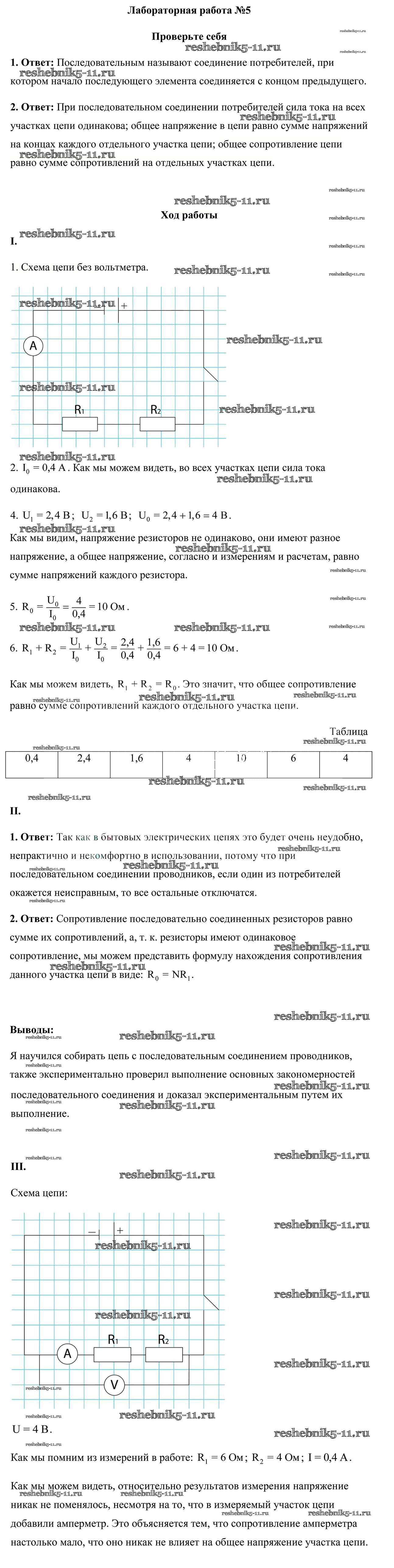 Готовая домашняя работа с ответами по Физике за 8 класс Исаченкова, Лещинский, Егорова Лабораторные работы Аверсэв 2016 - Лабораторные работы 5
