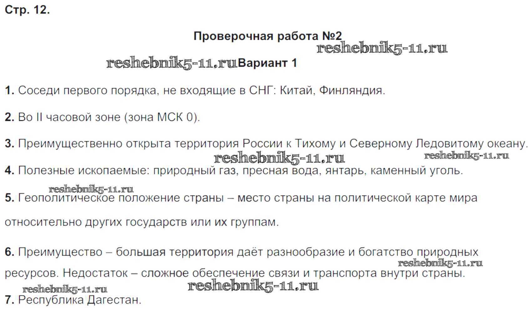 Готовая домашняя работа с ответами по Географии за 8 класс Барабанов Тетрадь-экзаменатор Сферы Просвещение 2016 ФГОС - Страницы 12