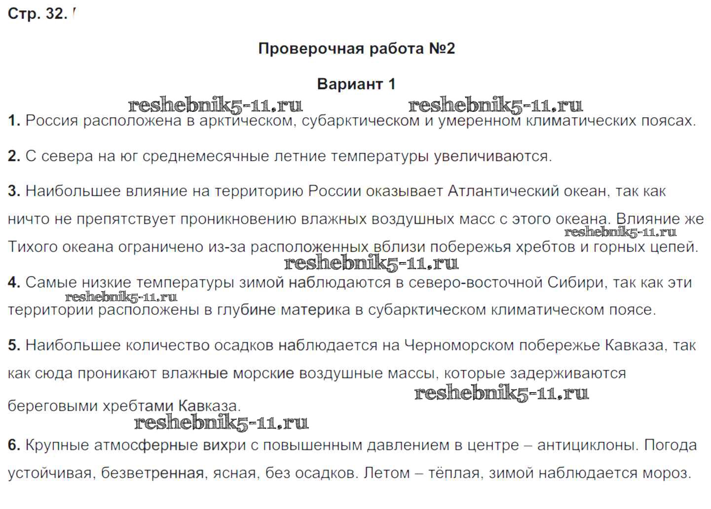 Готовая домашняя работа с ответами по Географии за 8 класс Барабанов Тетрадь-экзаменатор Сферы Просвещение 2016 ФГОС - Страницы 32