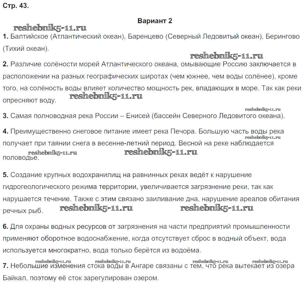 Готовая домашняя работа с ответами по Географии за 8 класс Барабанов Тетрадь-экзаменатор Сферы Просвещение 2016 ФГОС - Страницы 43