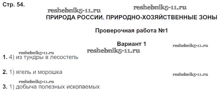 Готовая домашняя работа с ответами по Географии за 8 класс Барабанов Тетрадь-экзаменатор Сферы Просвещение 2016 ФГОС - Страницы 54