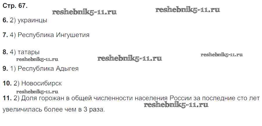 Готовая домашняя работа с ответами по Географии за 8 класс Барабанов Тетрадь-экзаменатор Сферы Просвещение 2016 ФГОС - Страницы 67