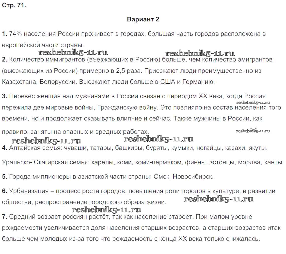 Готовая домашняя работа с ответами по Географии за 8 класс Барабанов Тетрадь-экзаменатор Сферы Просвещение 2016 ФГОС - Страницы 71