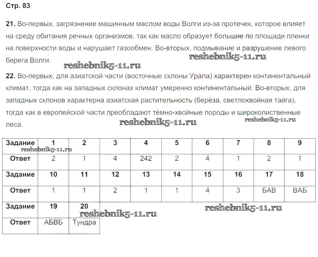 Готовая домашняя работа с ответами по Географии за 8 класс Барабанов Тетрадь-экзаменатор Сферы Просвещение 2016 ФГОС - Страницы 83