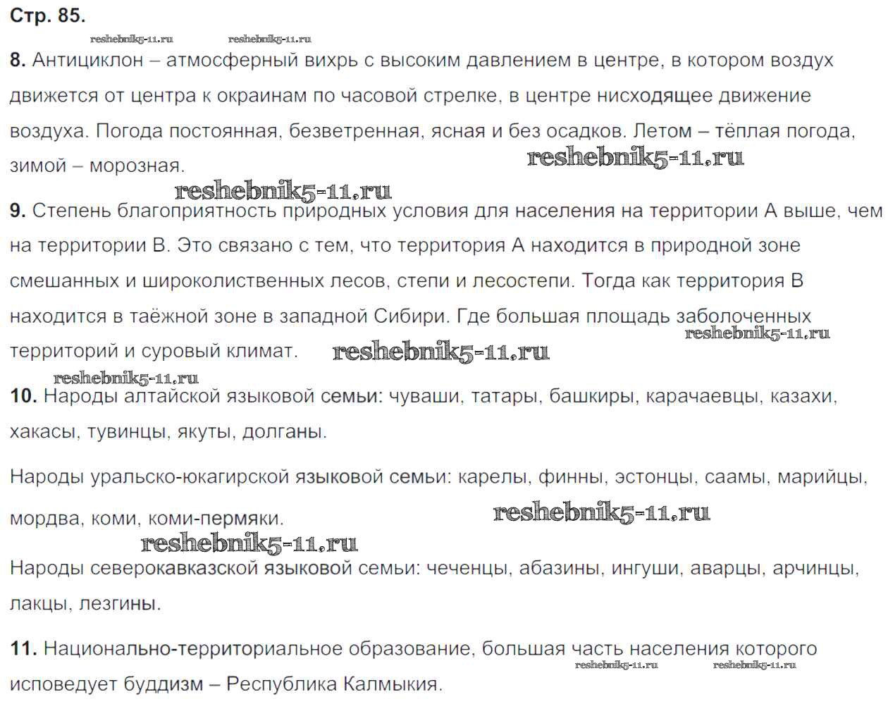 Готовая домашняя работа с ответами по Географии за 8 класс Барабанов Тетрадь-экзаменатор Сферы Просвещение 2016 ФГОС - Страницы 85
