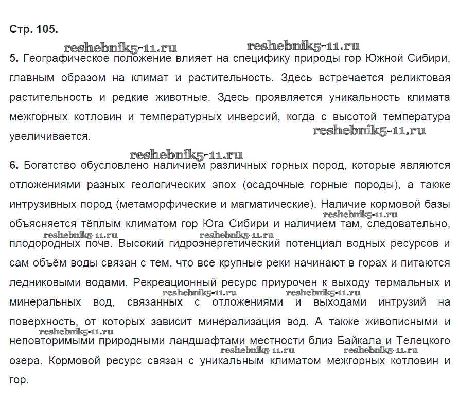 Готовая домашняя работа с ответами по Географии за 8 класс Баринова Рабочая тетрадь УМК Дрофа 2018 ФГОС - Страницы 105