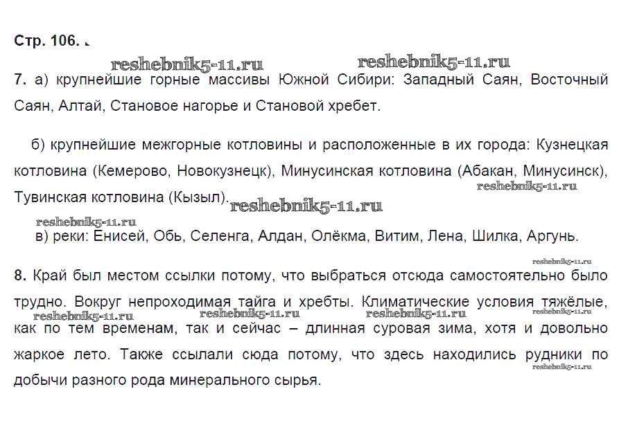 Готовая домашняя работа с ответами по Географии за 8 класс Баринова Рабочая тетрадь УМК Дрофа 2018 ФГОС - Страницы 106