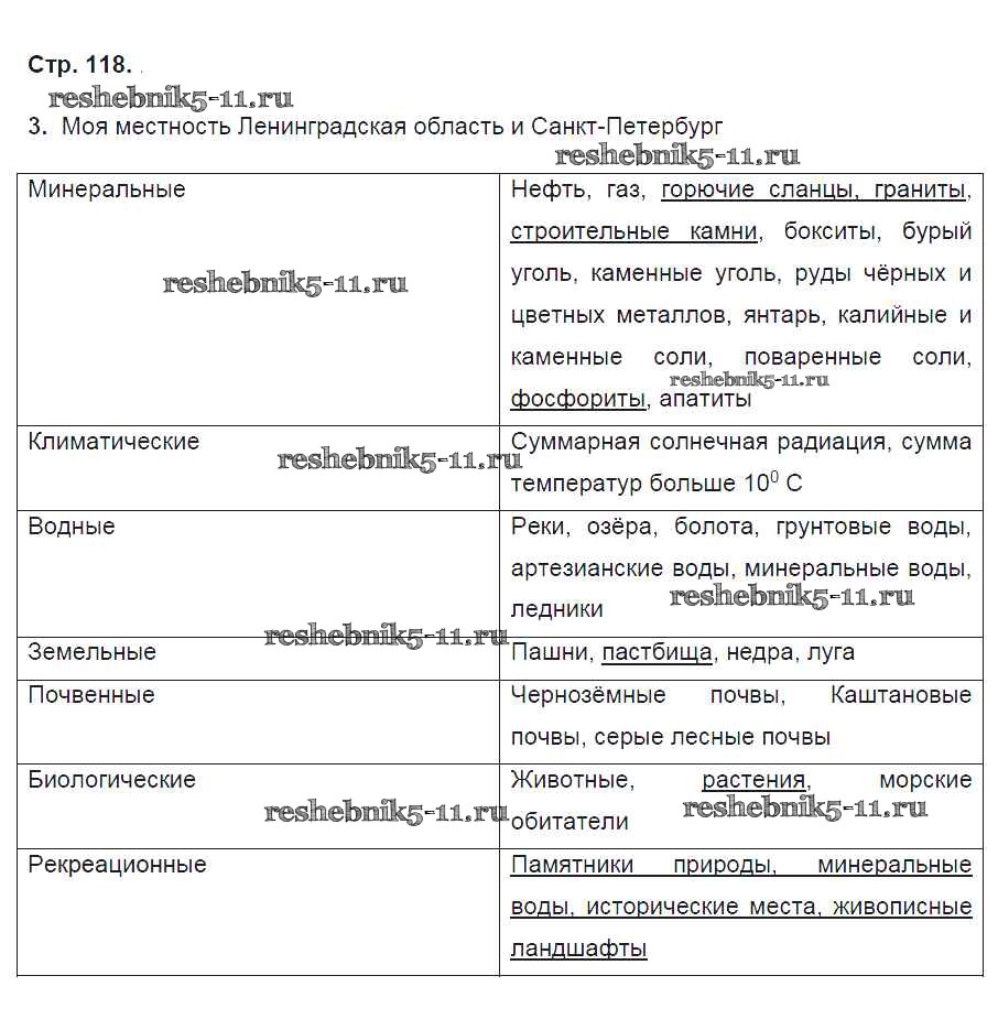 Готовая домашняя работа с ответами по Географии за 8 класс Баринова Рабочая тетрадь УМК Дрофа 2018 ФГОС - Страницы 118