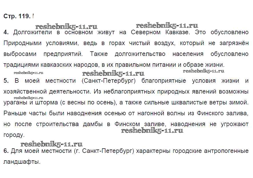 Готовая домашняя работа с ответами по Географии за 8 класс Баринова Рабочая тетрадь УМК Дрофа 2018 ФГОС - Страницы 119
