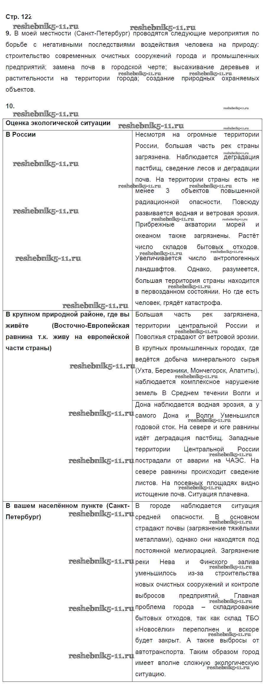 Готовая домашняя работа с ответами по Географии за 8 класс Баринова Рабочая тетрадь УМК Дрофа 2018 ФГОС - Страницы 122