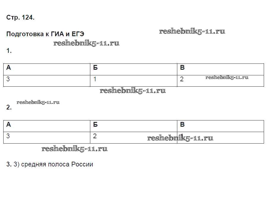 Готовая домашняя работа с ответами по Географии за 8 класс Баринова Рабочая тетрадь УМК Дрофа 2018 ФГОС - Страницы 124