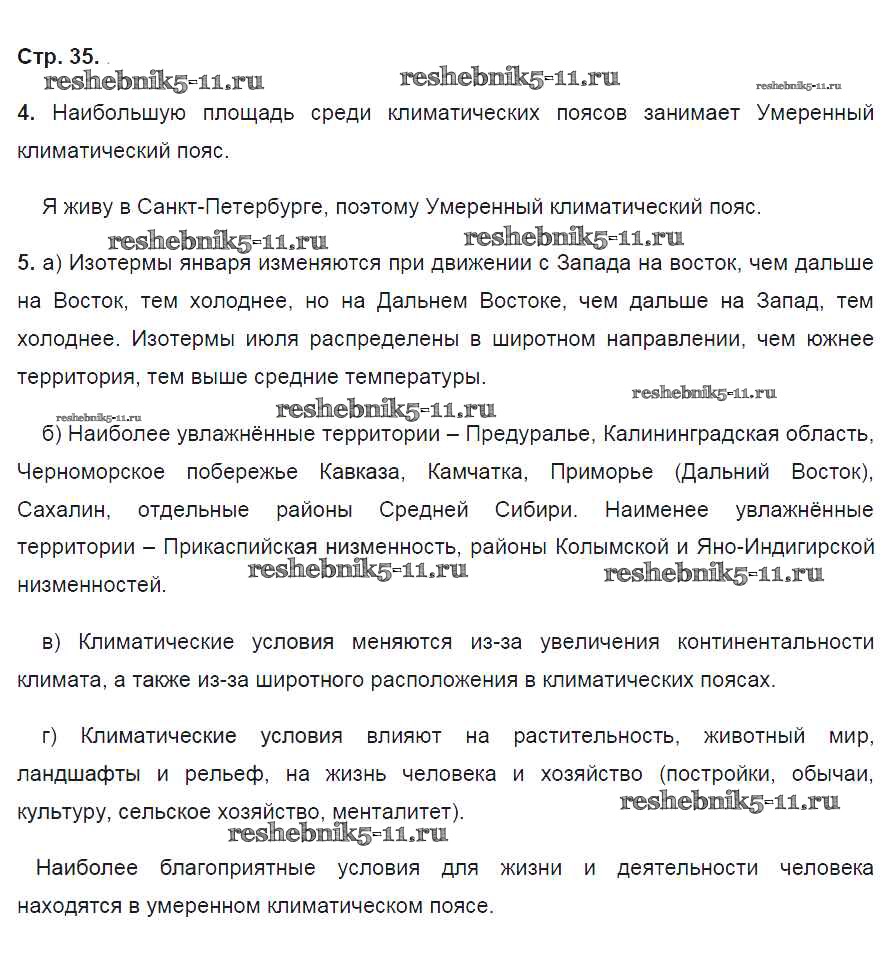 Готовая домашняя работа с ответами по Географии за 8 класс Баринова Рабочая тетрадь УМК Дрофа 2018 ФГОС - Страницы 35