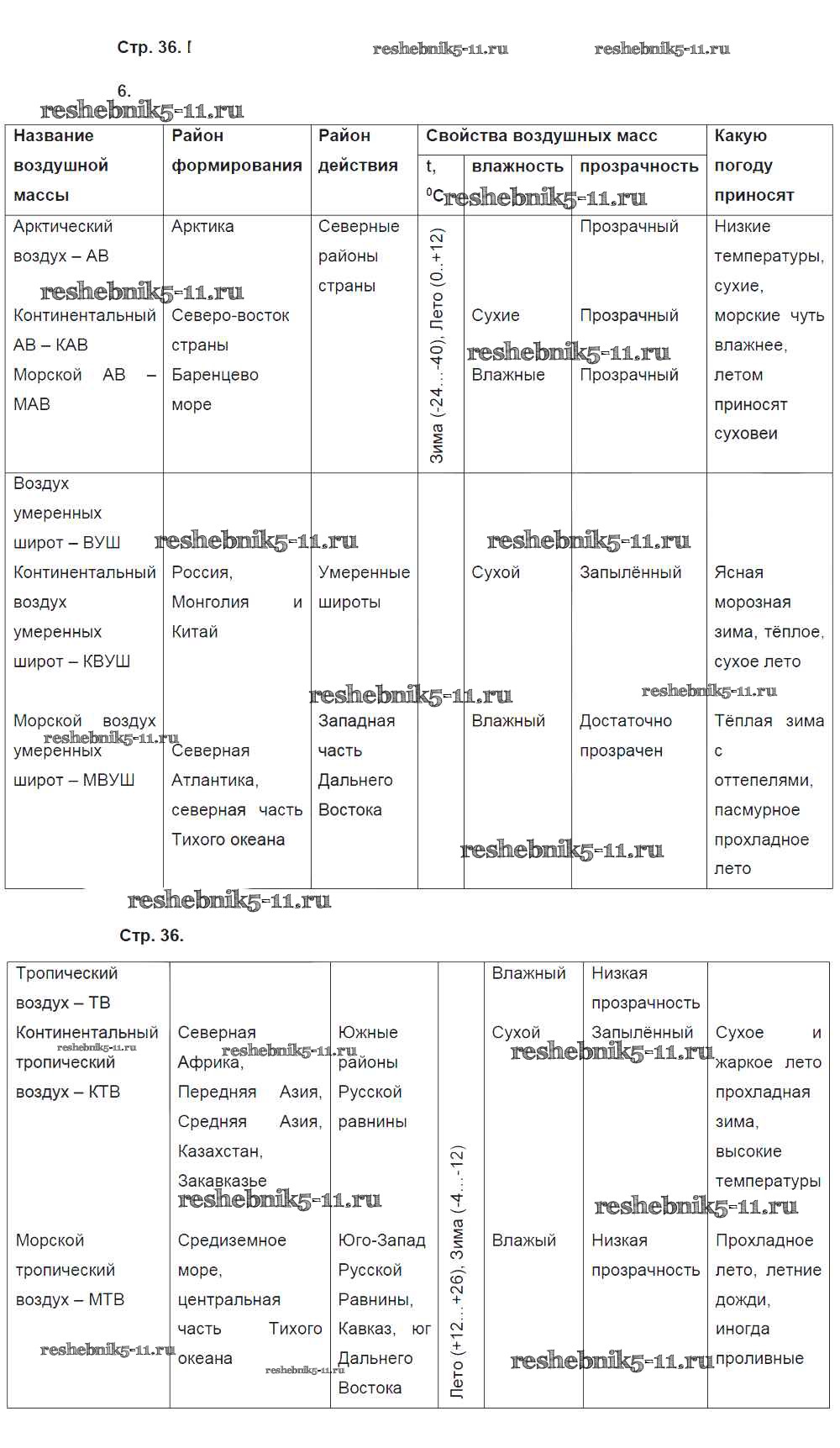 Готовая домашняя работа с ответами по Географии за 8 класс Баринова Рабочая тетрадь УМК Дрофа 2018 ФГОС - Страницы 36