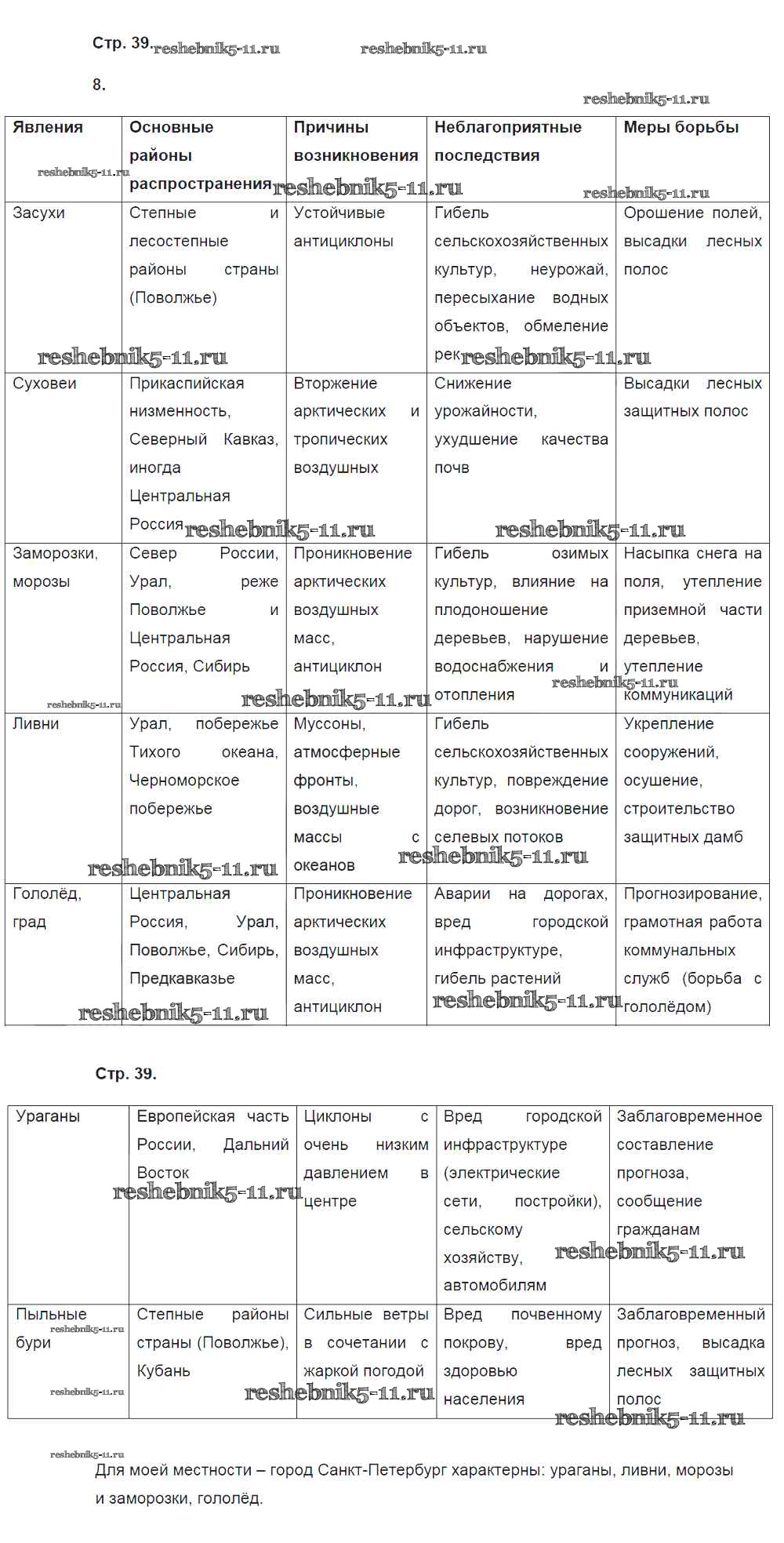 Готовая домашняя работа с ответами по Географии за 8 класс Баринова Рабочая тетрадь УМК Дрофа 2018 ФГОС - Страницы 39