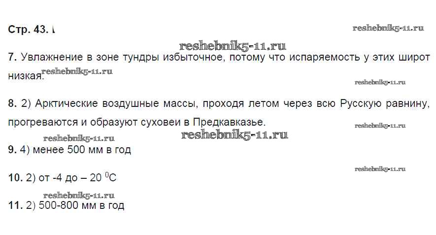 Готовая домашняя работа с ответами по Географии за 8 класс Баринова Рабочая тетрадь УМК Дрофа 2018 ФГОС - Страницы 43