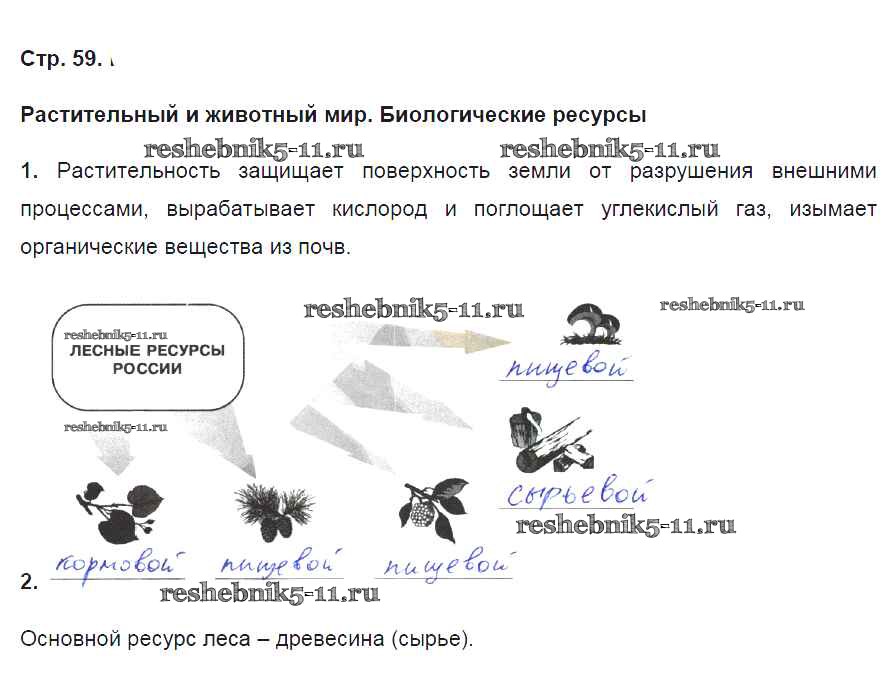 Готовая домашняя работа с ответами по Географии за 8 класс Баринова Рабочая тетрадь УМК Дрофа 2018 ФГОС - Страницы 59
