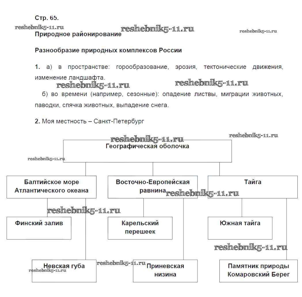 Готовая домашняя работа с ответами по Географии за 8 класс Баринова Рабочая тетрадь УМК Дрофа 2018 ФГОС - Страницы 65