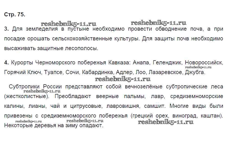 Готовая домашняя работа с ответами по Географии за 8 класс Баринова Рабочая тетрадь УМК Дрофа 2018 ФГОС - Страницы 75