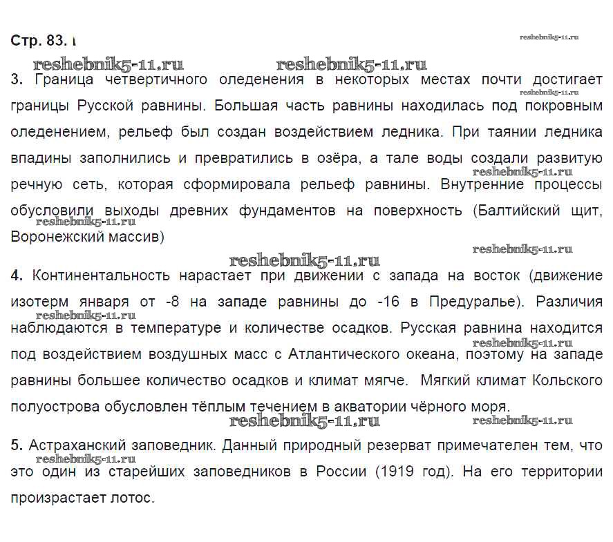 Готовая домашняя работа с ответами по Географии за 8 класс Баринова Рабочая тетрадь УМК Дрофа 2018 ФГОС - Страницы 83
