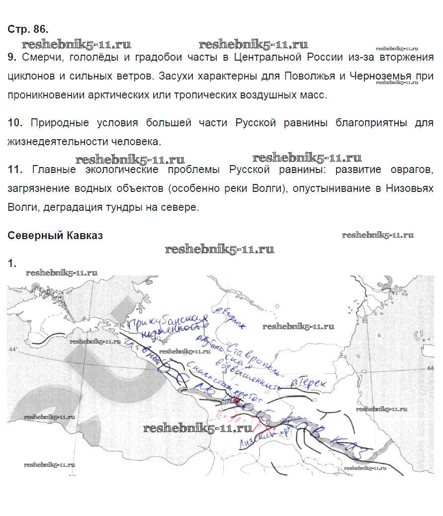 Готовая домашняя работа с ответами по Географии за 8 класс Баринова Рабочая тетрадь УМК Дрофа 2018 ФГОС - Страницы 86
