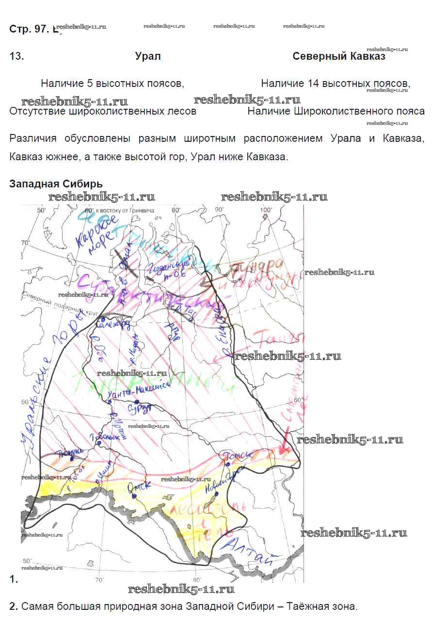 Готовая домашняя работа с ответами по Географии за 8 класс Баринова Рабочая тетрадь УМК Дрофа 2018 ФГОС - Страницы 97